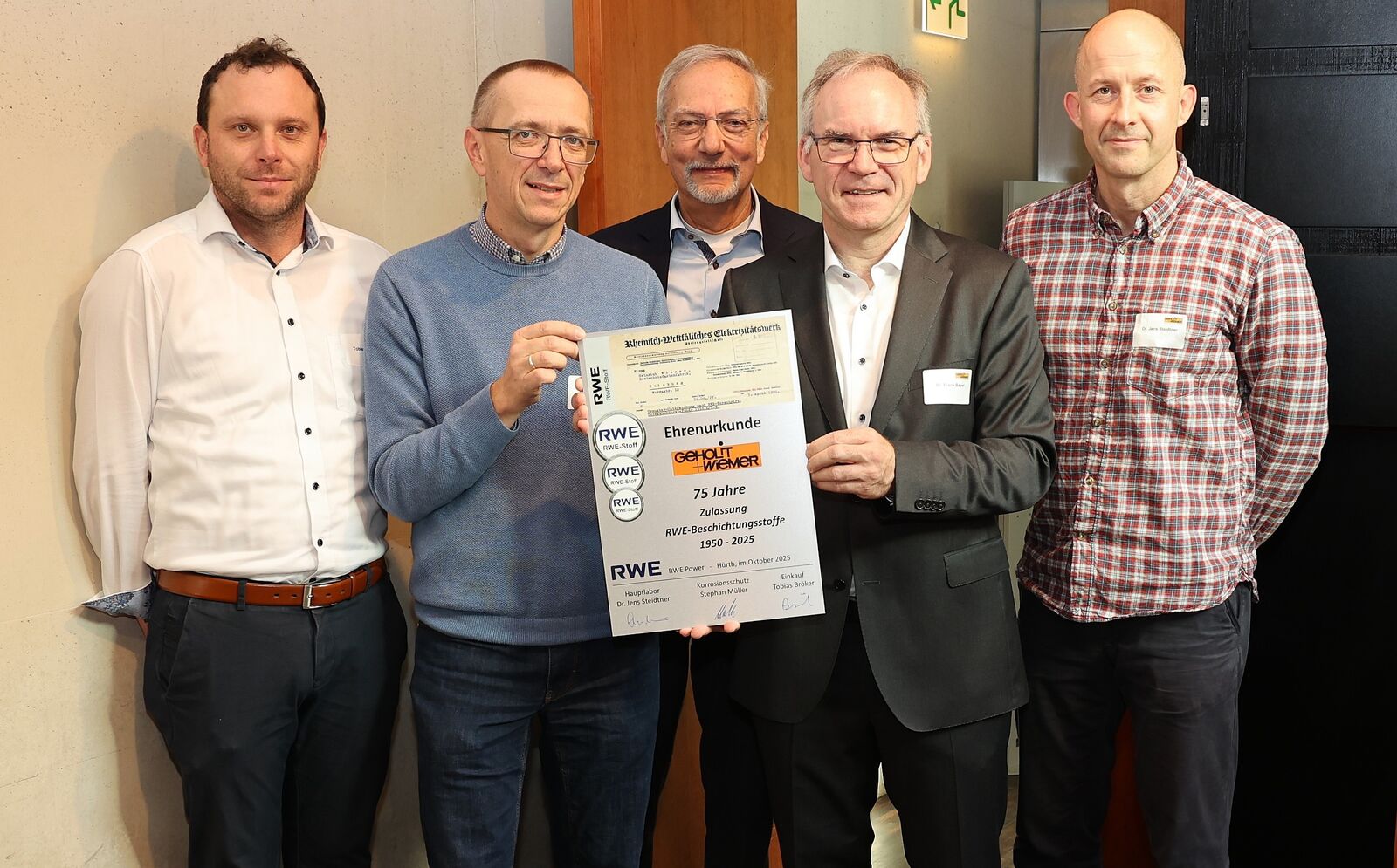 Am 30. Oktober 2025 feierten wir ein ganz besonderes Ereignis: 75 Jahre erfolgreiche und vertrauensvolle Zusammenarbeit mit RWE. Seit 1950 verbindet uns eine Partnerschaft, die von gegenseitigem Respekt, Verlässlichkeit und dem gemeinsamen Antrieb geprägt ist, technische Lösungen stetig weiterzuentwickeln.