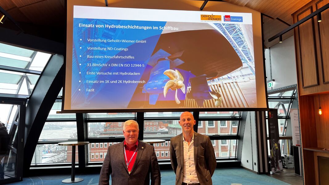 Gemeinsam mit Lars-Eric Etzold von ND Coatings GmbH, Papenburg, präsentierte unser Kollege Stefan Luipers im Vortrag „Einsatz von Hydrobeschichtungsstoffen im Schiffsbau und im schweren Korrosionsschutz“ aktuelle Entwicklungen moderner Hydrobeschichtungsstoffe. Rund 150 Teilnehmende erhielten einen Einblick, wie diese Lacke heute eingesetzt werden können: Mit Hydrolacken lassen sich CX-Korrosivitätskategorien erreichen, während gleichzeitig Lösemitteleinsparungen von bis zu 96 % realisierbar sind.