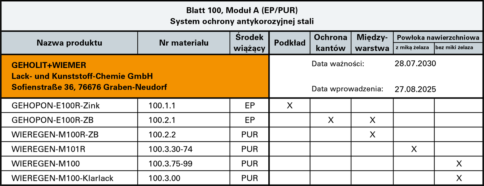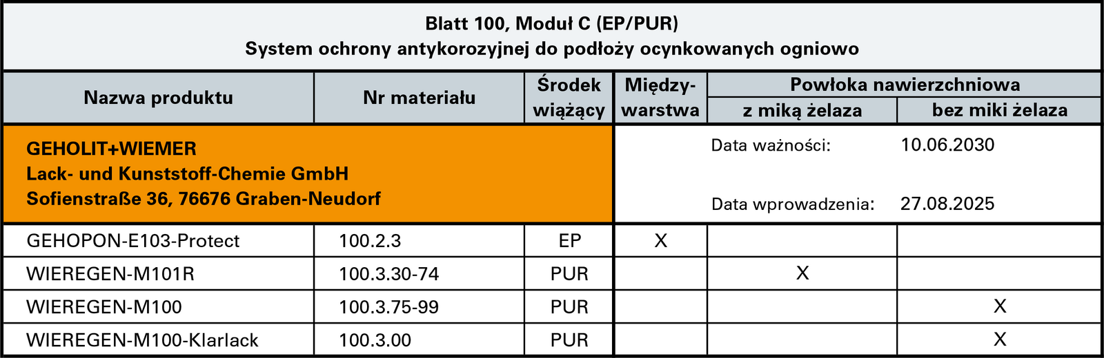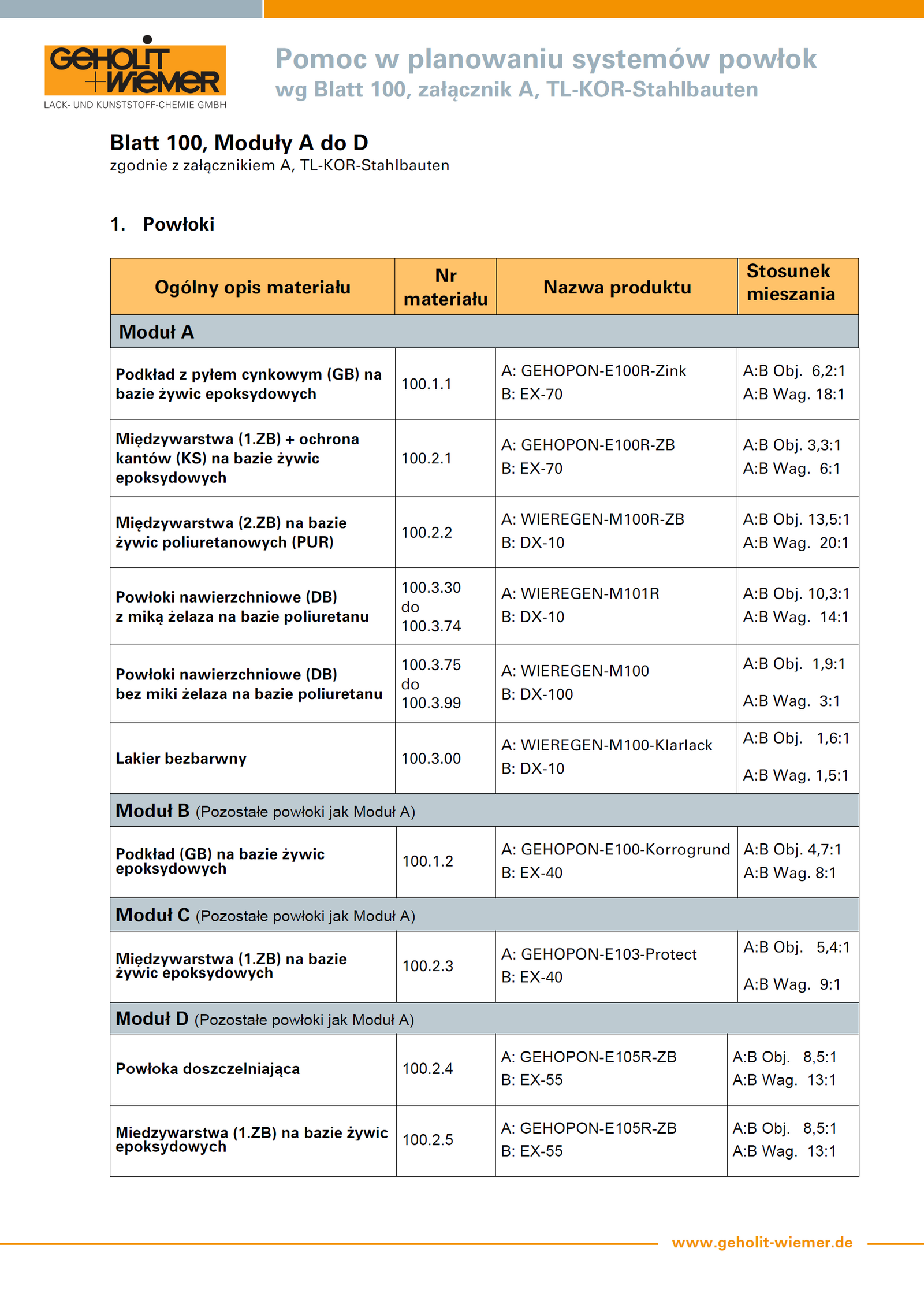 GEHOLIT+WIEMER – INNOWACYJNE POWŁOKI WEDŁUG BLATT 100
